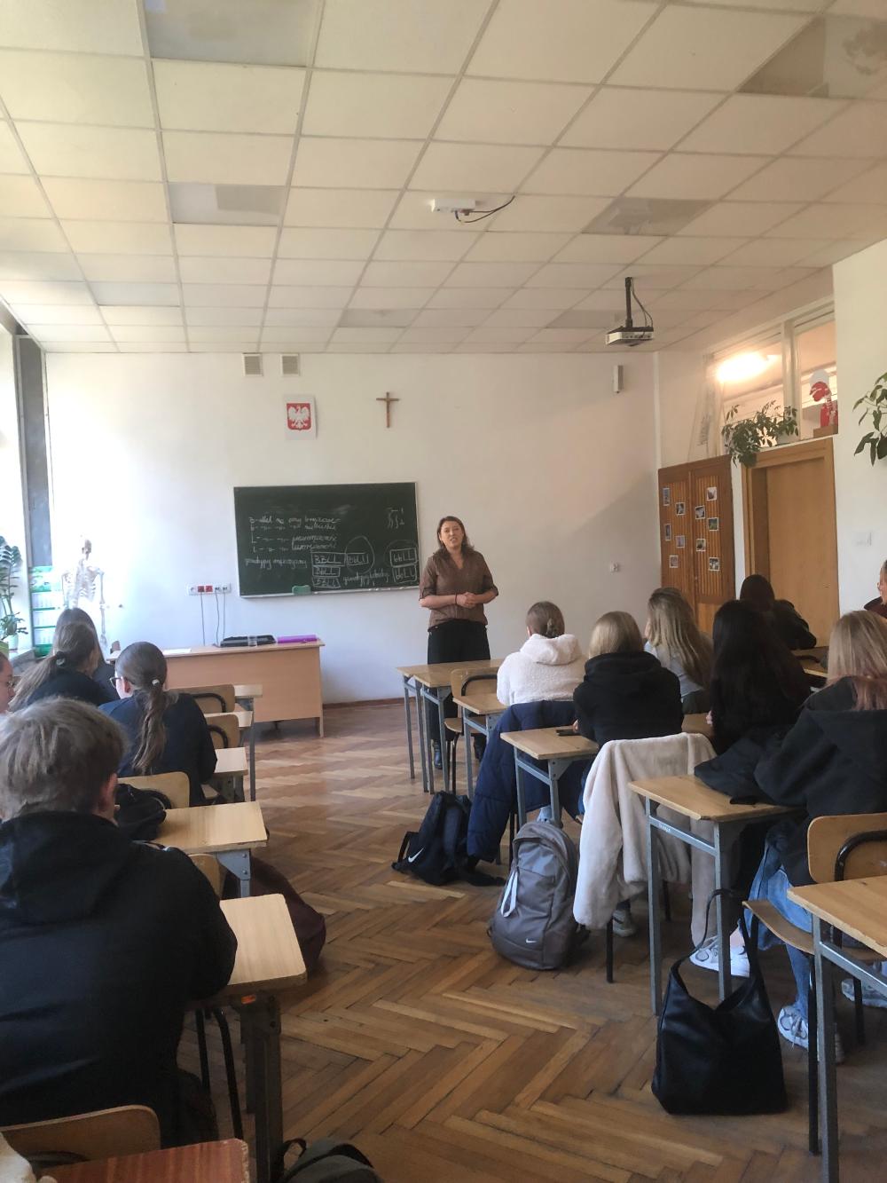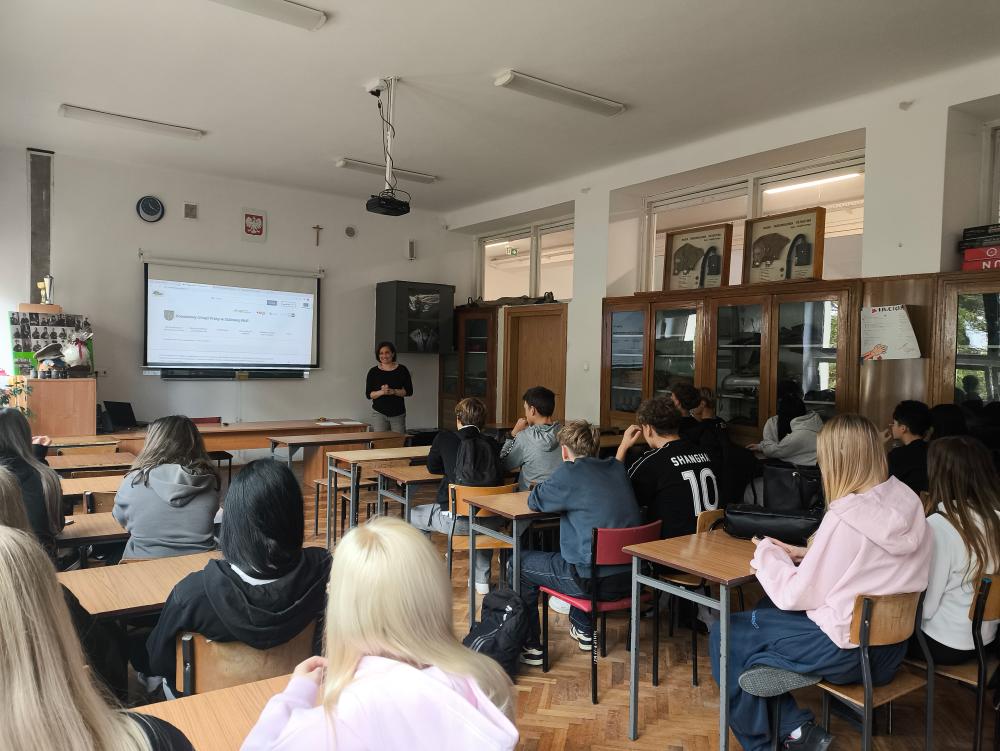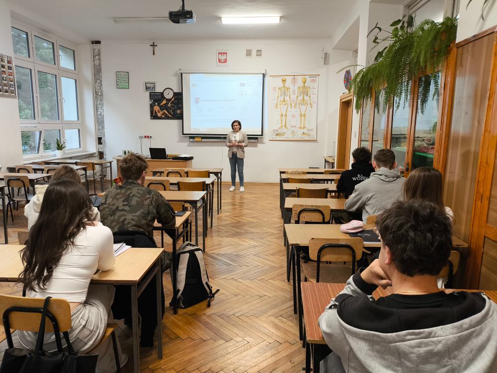 W dniach 8, 10, 21 i 24 października 2025 roku na zaproszenie Zespołu Szkół nr 1 im. gen. Władysława Sikorskiego w Stalowej Woli doradcy zawodowi naszego Urzędu, Panie Beata Maciąg oraz Barbara Budziło, wzięły udział w spotkaniu informacyjnym z uczniami klas maturalnych. Część z uczniów, zapewne już po zakończeniu nauki będzie chciała postawić swoje pierwsze kroki na rynku pracy i celem spotkania było przybliżenie im instytucji urzędu pracy i tego w jaki sposób może im on pomóc w rozpoczęciu aktywności zawodowej. Skupiono się na tych formach pomocy dostępnych w stalowowolskim PUP, które z punktu widzenia absolwenta wchodzącego na rynek pracy mogą być dla niego najbardziej przydatne np. staże, szkolenia, bony na zasiedlenie, zatrudnienie subsydiowane, poradnictwo zawodowe.